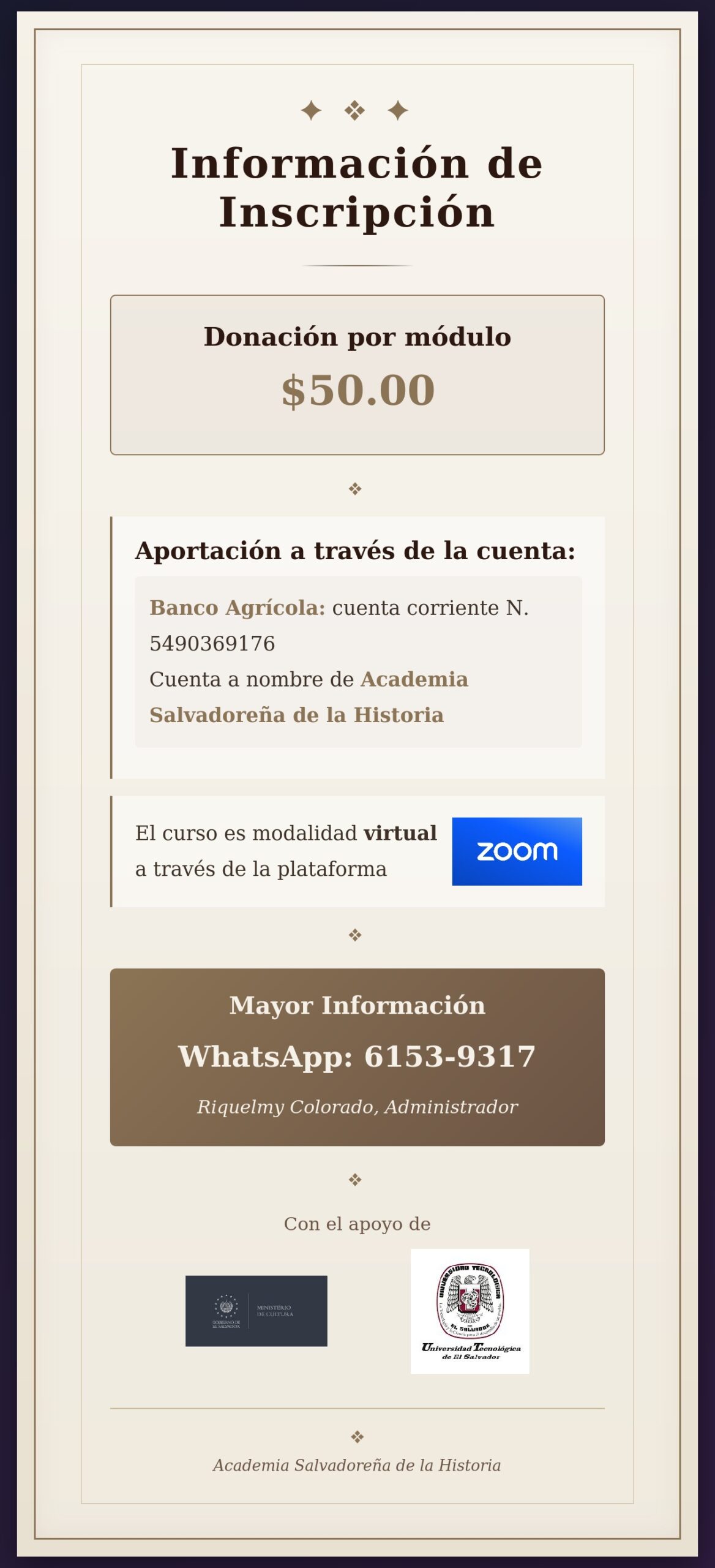 NOTICIAS Y ACTIVIDADES Cátedras de la Academia Curso Superior de Historia, Cátedras de la Academia, 11° Edición, 2026. Posted on Cátedras de la Academia Posted on Cátedras de la Academia Posted on Congreso II Congreso Mundial Latinoamericano de Ciencias Históricas Posted on Congreso II Congreso Mundial Latinoamericano de Ciencias Históricas Posted on Congreso II Congreso Mundial Latinoamericano de Ciencias Históricas Posted on Congreso II Congreso Mundial Latinoamericano de Ciencias Históricas Posted on Congreso II Congreso Mundial Latinoamericano de Ciencias Históricas Posted on Congreso II Congreso Mundial Latinoamericano de Ciencias Históricas Posted on Congreso II Congreso Mundial Latinoamericano de Ciencias Históricas Posted on CATÁLOGO EN LÍNEA Academia Salvadoreña de la Historia Expresión de consulta Campo a consultar Todos Título Fecha y lugar Materias Onomásticos / Autores Geográficos Instituciones Contenido Todas las palabras Frase exacta Buscar en: Todos los registros Registros digitales Registros no digitales